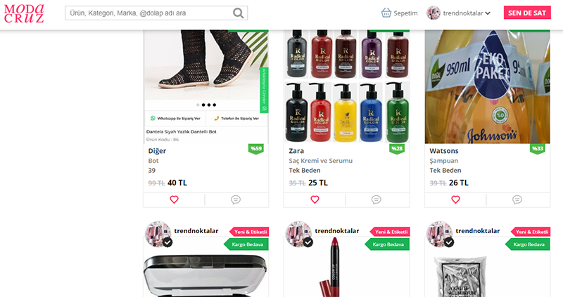 Trend Noktalar olarak bizimde satışımızın bulunduğu bu sayfalar, yüzlerce kullanıcı tarafından takip ediliyor. Farklı kanallar ile satışa sunduğumuz yeni etiketli ürünlerde, ağırlık olarak saç bakım ve kozmetik ürünleri bulunuyor. Kargo bedelsiz, en ucuz fiyatlarla satın alabileceğiniz bu ürünlerin aynı anda farklı platformlarda satışa sunulduğundan alım yapmadan önce mesaj yollamanızı tercih ediyoruz. Böylece stok durumunun kontrollerini yaparak, karşılıklı memnuniyet sağlayabiliyoruz.